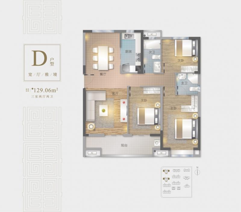 3室 面积:129㎡ 售价:来电咨询 朝向:来电咨询
